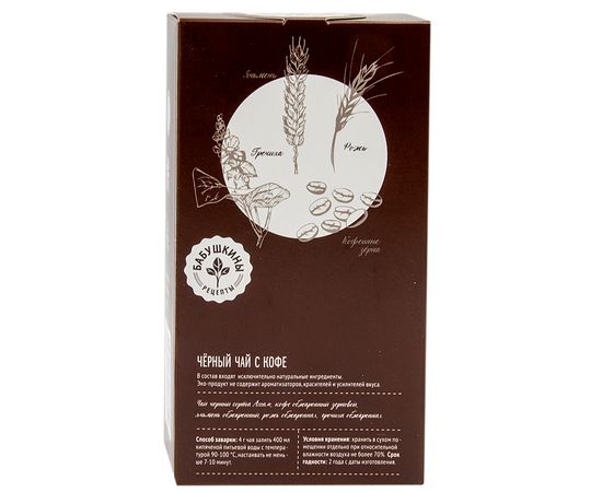Чай черный сорта Ассам, кофе обжаренный зерновой, ячмень обжаренный, рожь обжаренная, гречиха обжаренная